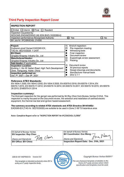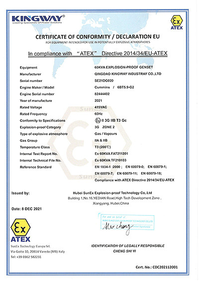 Nós fornecemos uma solução completa à prova de explosão Zona 2 para Gerador, Compressor de Ar, Bomba de Alta Pressão, etc nas indústrias offshore e onshore, oifield e gasfield, todos os padrões de produtos estão em conformidade com as diretivas 2014/34/EU-ATEX, Converter para: Equipamento do Grupo II , Categoria 3G ( Zona 2 IIB T3 Gc )