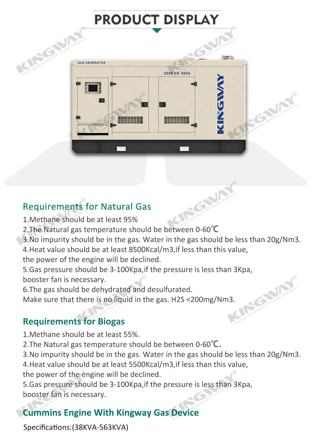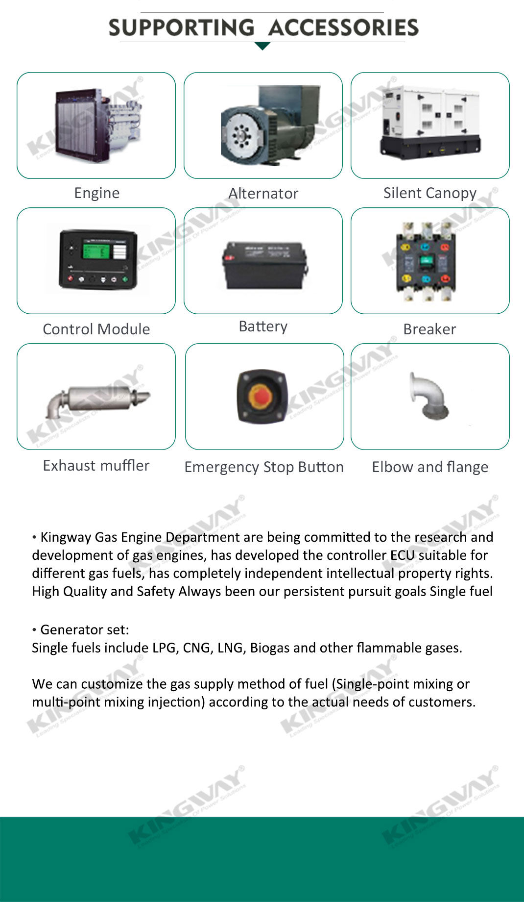 O grupo gerador de gás usa o gás como combustível, incluindo gerador de gás trifásico, GNL, grupo gerador de GLP etc. Kingway Gas Power Department tem se comprometido com a pesquisa e desenvolvimento de motores a gás, desenvolveu o controlador ECU e o radiador do gerador adequado para diferentes combustíveis de gás, tem direitos de propriedade intelectual completamente independentes. Nós podemos não apenas fornecer todo o motor a gás, mas também fornecer serviço de modificação de gerador a diesel trifásico e design, fabricação e instalação do sistema de abastecimento de gás (estação skid de gás). Com a forte tecnologia, qualquer tipo de motor a diesel e alternador CA pode ser convertido com sucesso em motor a gás monocombustível ou bicombustível, não há diferença fundamental de desempenho em comparação com a máquina original e pode ser personalizado de acordo com as condições de trabalho e ambientais, então o efeito de uso real excede a máquina original. Gerador de gás trifásico também popular no mercado externo.